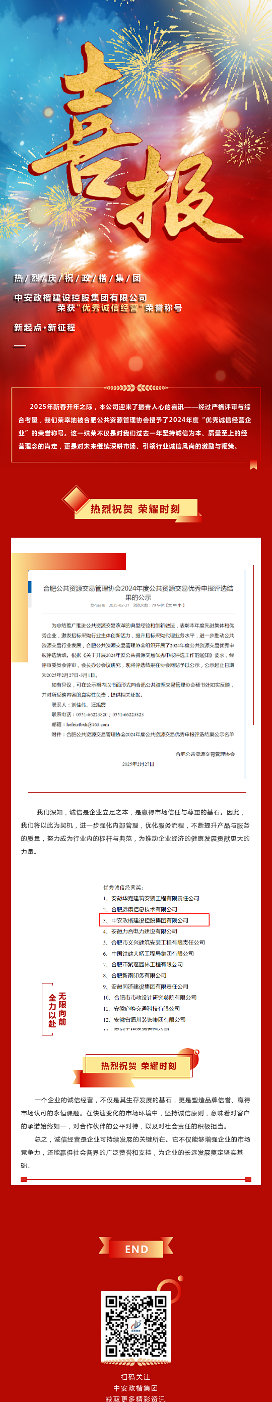 热烈庆祝中安政楷集团荣获合肥公共资源交易管理协会2024年度优秀诚信经营企业
