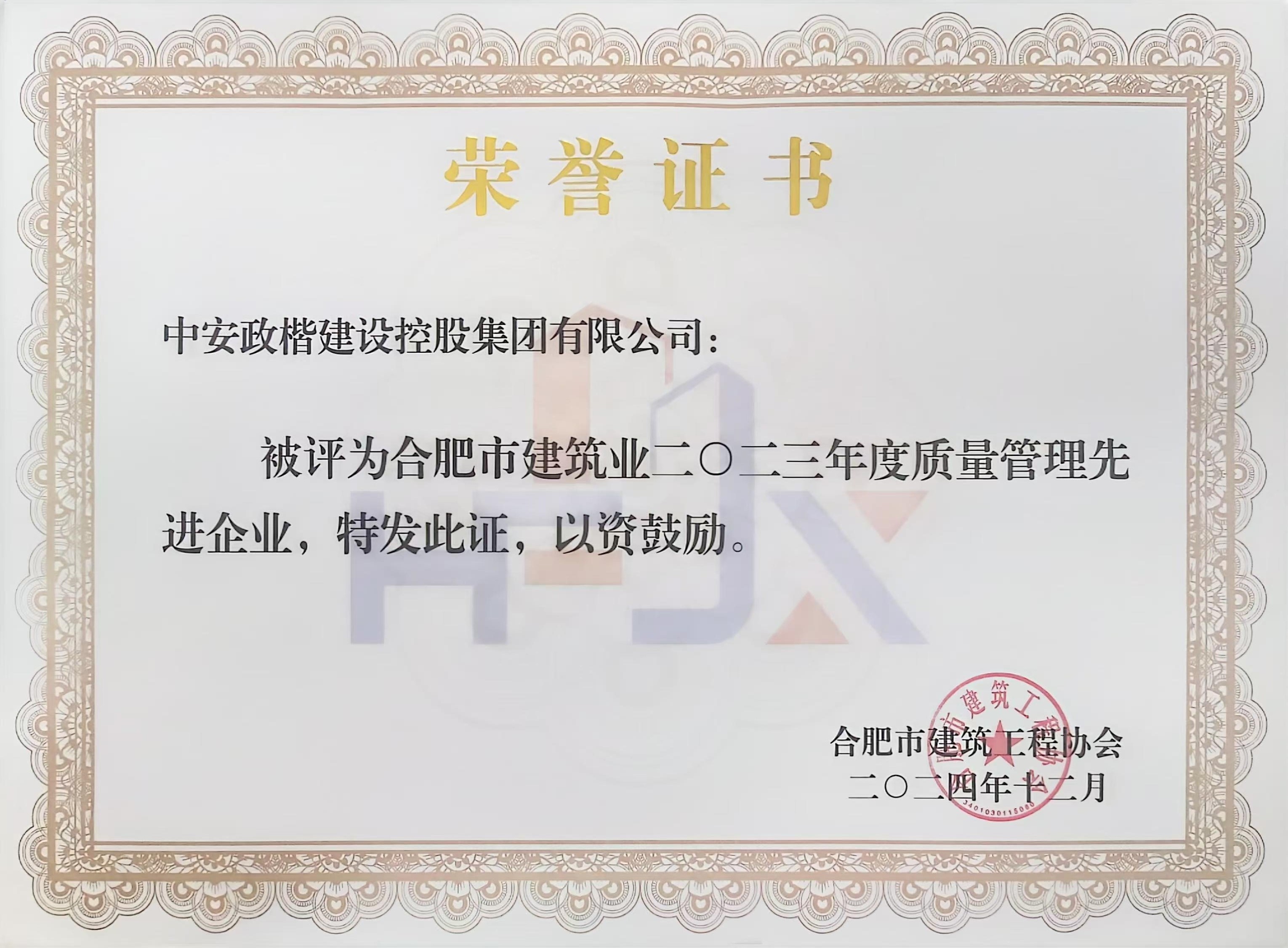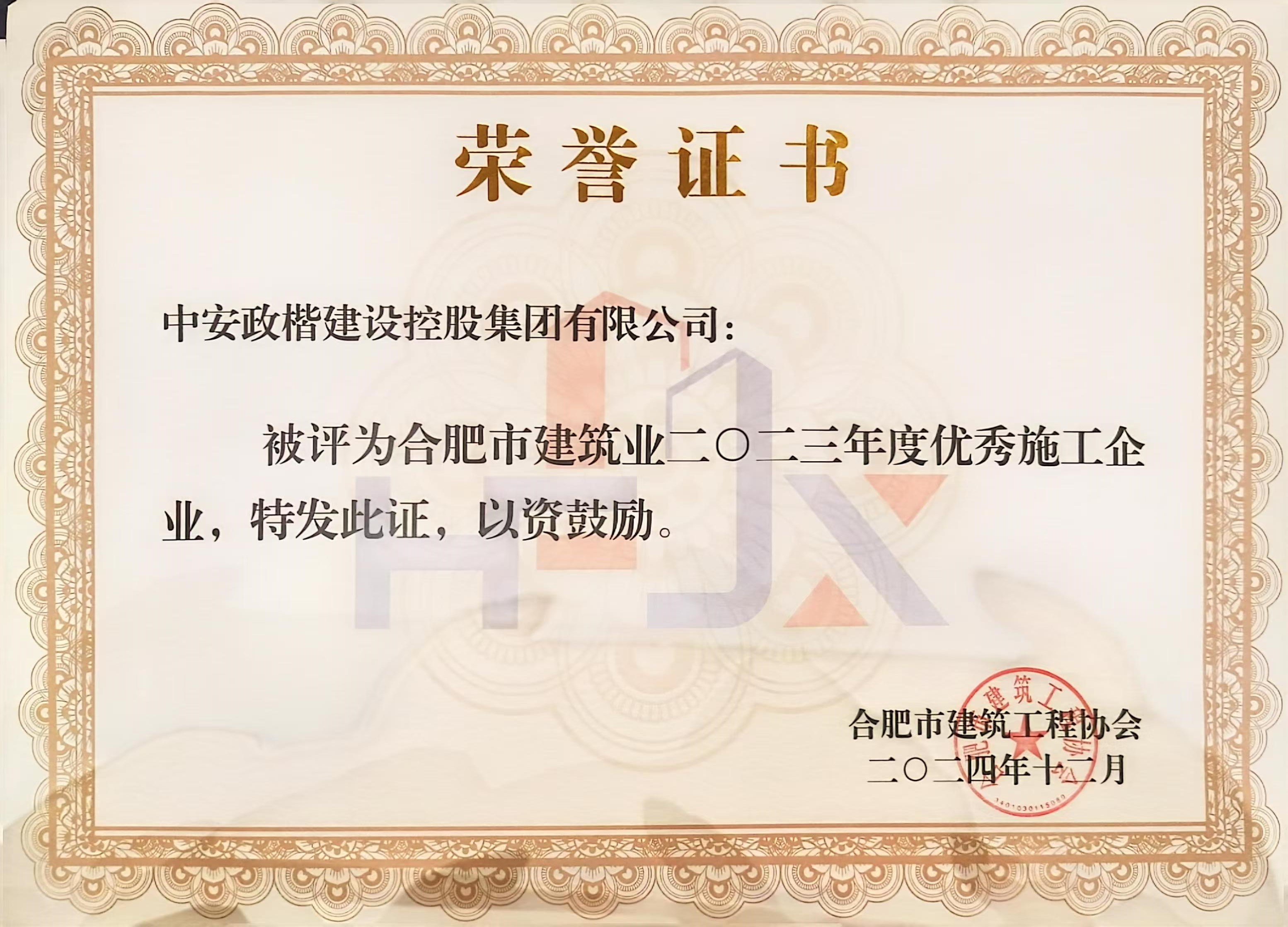 合肥市2023年度优秀施工企业