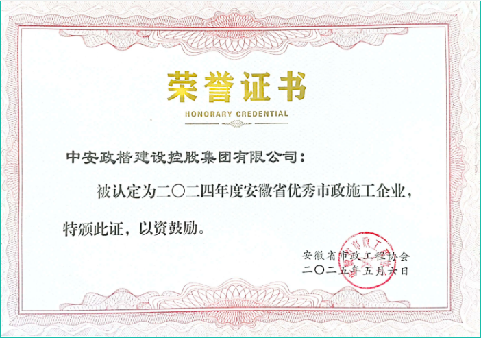 2024年度安徽省优秀市政施工企业